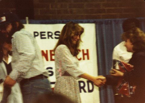 My friend Ed was there with me. In the first picture, I think she was gettin' ready to give me a kiss. I'd stood up in front of everyone and went "Yaa-hoo, Yeee-haw!".. for that, got a kiss! :-) Ed was jealous..