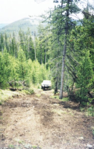 Notice the tree to the right of Bill's pickup.. this is the tailgate eater.. nearly every open diff'd truck will eventually slide backwards down the hill, and right into this tree. You've been warned!
